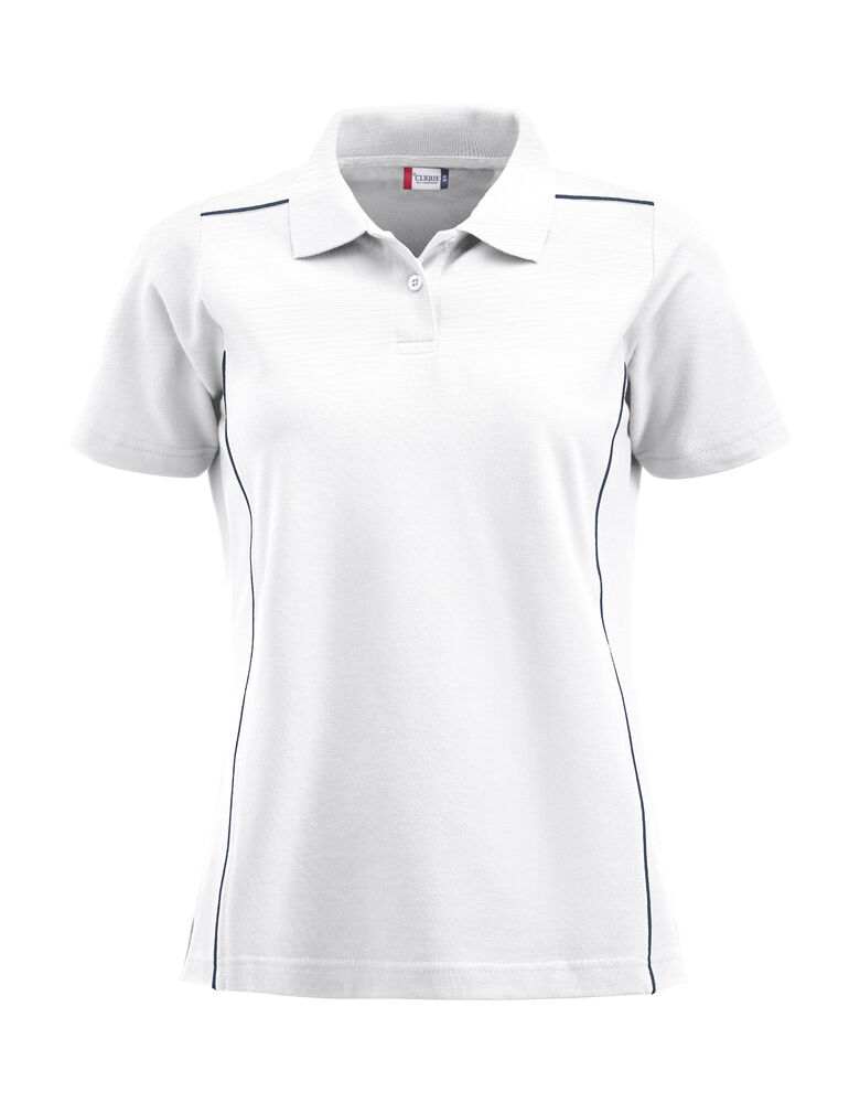 Polo shirt with contrasting trim and matching buttons. Side slits.