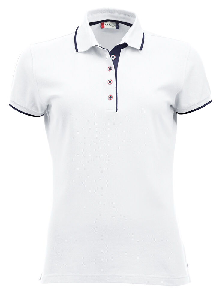 Polo värvikontrastsusega nööbid, kaelus ja küljetuulutusavaga. Meestel 3 nööbiga, naistel 5 nööbiga. Kontrastne triip krae ja varruka otsas.